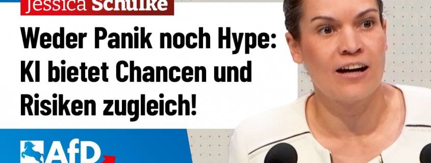 Jessica Schülke, kulturpolitische Sprecherin der AfD-Fraktion im Niedersächsischen Landtag, weist in ihrer Rede auf die hohen Potenziale, aber auch die Gefahren von Künstlicher Intelligenz (KI) in Kunst und Kultur hin.